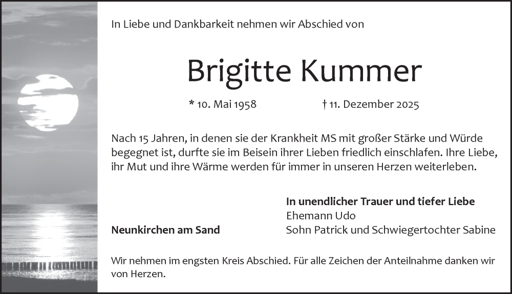 Hier finden Sie alle Traueranzeigen aus der Zeitung, die bisher für Brigitte Kummer erschienen sind. Weitere Traueranzeigen, die in der Zeitung erscheinen, werden hier ebenfalls aufgelistet