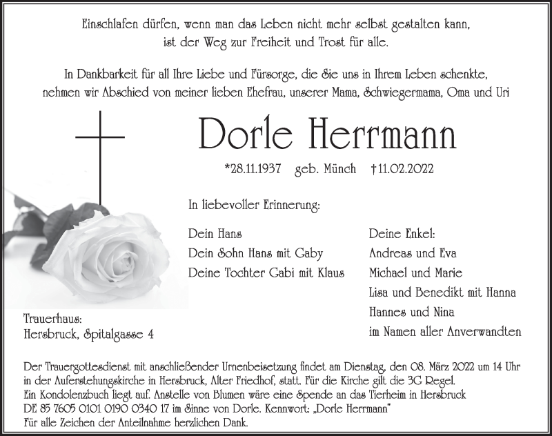Hier finden Sie alle Traueranzeigen aus der Zeitung, die bisher für Dorle Herrmann erschienen sind. Weitere Traueranzeigen, die in der Zeitung erscheinen, werden hier ebenfalls aufgelistet