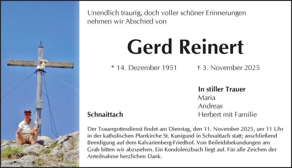 Hier finden Sie alle Traueranzeigen aus der Zeitung, die bisher für Gerd Reinert erschienen sind. Weitere Traueranzeigen, die in der Zeitung erscheinen, werden hier ebenfalls aufgelistet