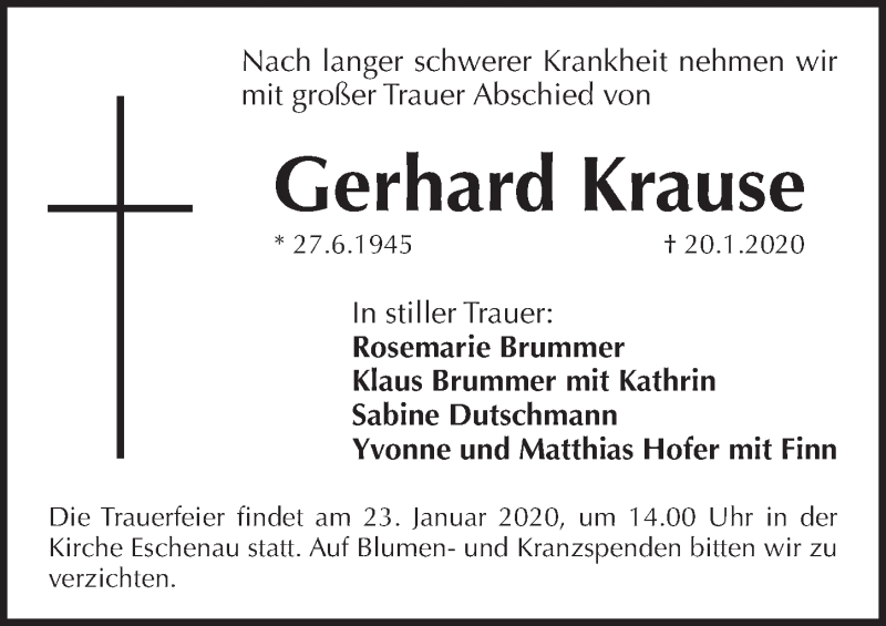 Hier finden Sie alle Traueranzeigen aus der Zeitung, die bisher für Gerhard Krause erschienen sind. Weitere Traueranzeigen, die in der Zeitung erscheinen, werden hier ebenfalls aufgelistet