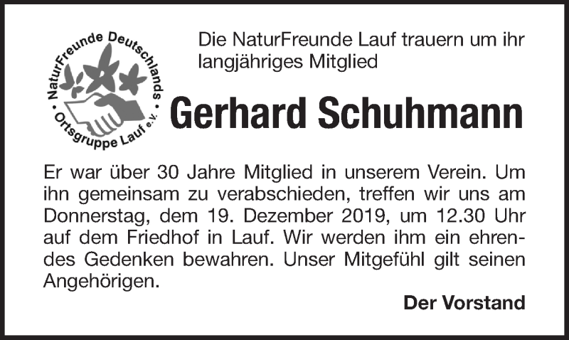 Hier finden Sie alle Traueranzeigen aus der Zeitung, die bisher für Gerhard Schuhmann erschienen sind. Weitere Traueranzeigen, die in der Zeitung erscheinen, werden hier ebenfalls aufgelistet