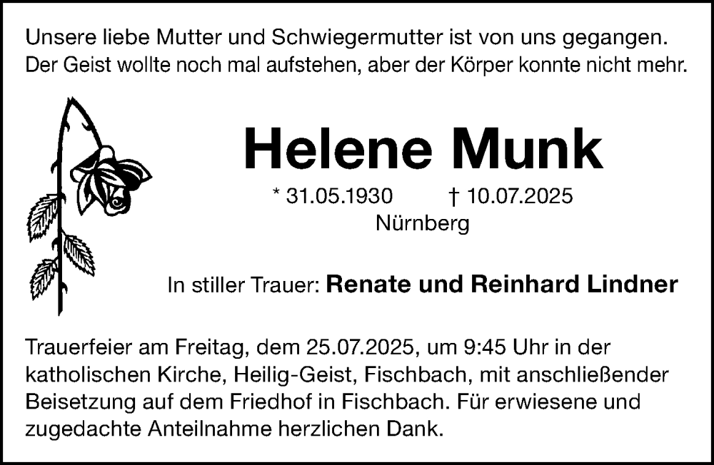 Hier finden Sie alle Traueranzeigen aus der Zeitung, die bisher für Helene Munk erschienen sind. Weitere Traueranzeigen, die in der Zeitung erscheinen, werden hier ebenfalls aufgelistet