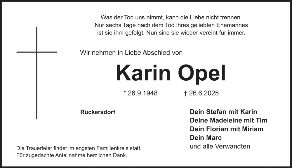 Hier finden Sie alle Traueranzeigen aus der Zeitung, die bisher für Karin Opel erschienen sind. Weitere Traueranzeigen, die in der Zeitung erscheinen, werden hier ebenfalls aufgelistet