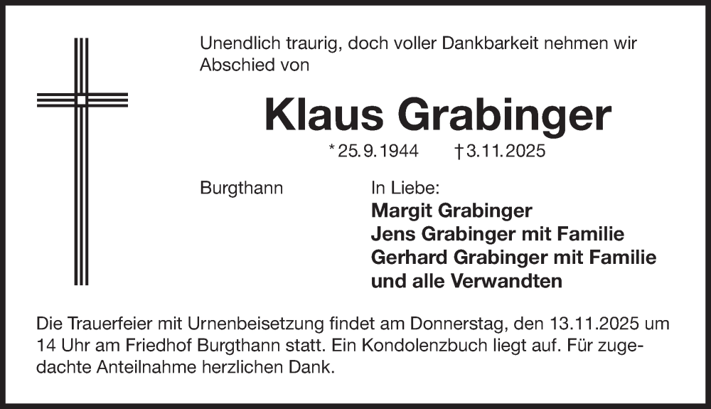 Hier finden Sie alle Traueranzeigen aus der Zeitung, die bisher für Klaus Grabinger erschienen sind. Weitere Traueranzeigen, die in der Zeitung erscheinen, werden hier ebenfalls aufgelistet