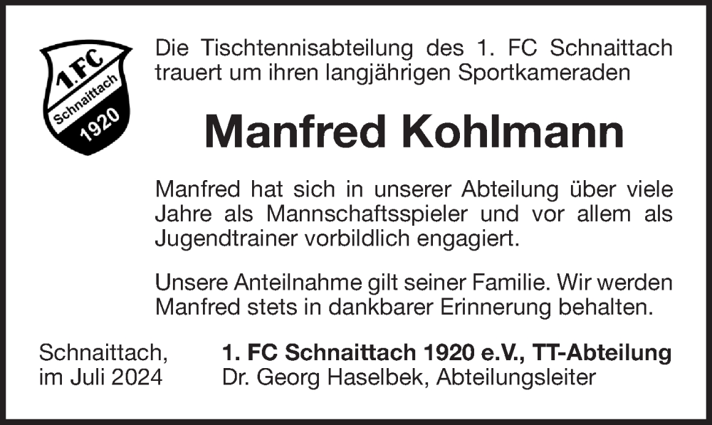 Hier finden Sie alle Traueranzeigen aus der Zeitung, die bisher für Manfred Kohlmann erschienen sind. Weitere Traueranzeigen, die in der Zeitung erscheinen, werden hier ebenfalls aufgelistet