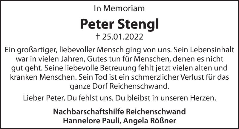 Hier finden Sie alle Traueranzeigen aus der Zeitung, die bisher für Peter Stengl erschienen sind. Weitere Traueranzeigen, die in der Zeitung erscheinen, werden hier ebenfalls aufgelistet