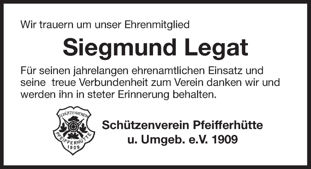 Hier finden Sie alle Traueranzeigen aus der Zeitung, die bisher für Siegmund Legat erschienen sind. Weitere Traueranzeigen, die in der Zeitung erscheinen, werden hier ebenfalls aufgelistet