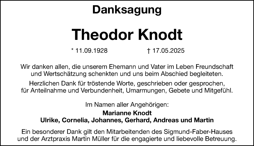 Hier finden Sie alle Traueranzeigen aus der Zeitung, die bisher für Theodor Knodt erschienen sind. Weitere Traueranzeigen, die in der Zeitung erscheinen, werden hier ebenfalls aufgelistet